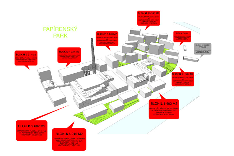 The urban design study of the former papermill in Pilsen is elaborated for the present owner and serves him as a basis for “What will it be” decision making. The setting from investor is fairly free but led by the client´s effort to clarify the “maximum usage” of his plots. The terrain is situated on a river curve, particular meanders embody areas similar to the “papermill”. The EUROPAN 8 locality lies across the river.